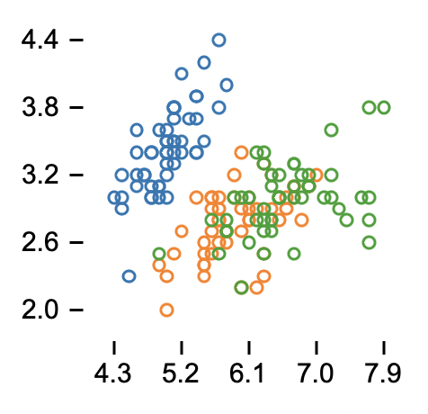 My implementation so far is about 250 lines of code, and doesn’t yet include the ability to make bar charts, does not include faceting, or support for something like Plot’s z channel. I’m also not yet sure about the best way to support interactive selection, highlighting, and animated transitions. But you can use continuous, ordinal, and categorical encodings to plot text, dots, and lines, with scale and tick inference and a composable mark system.