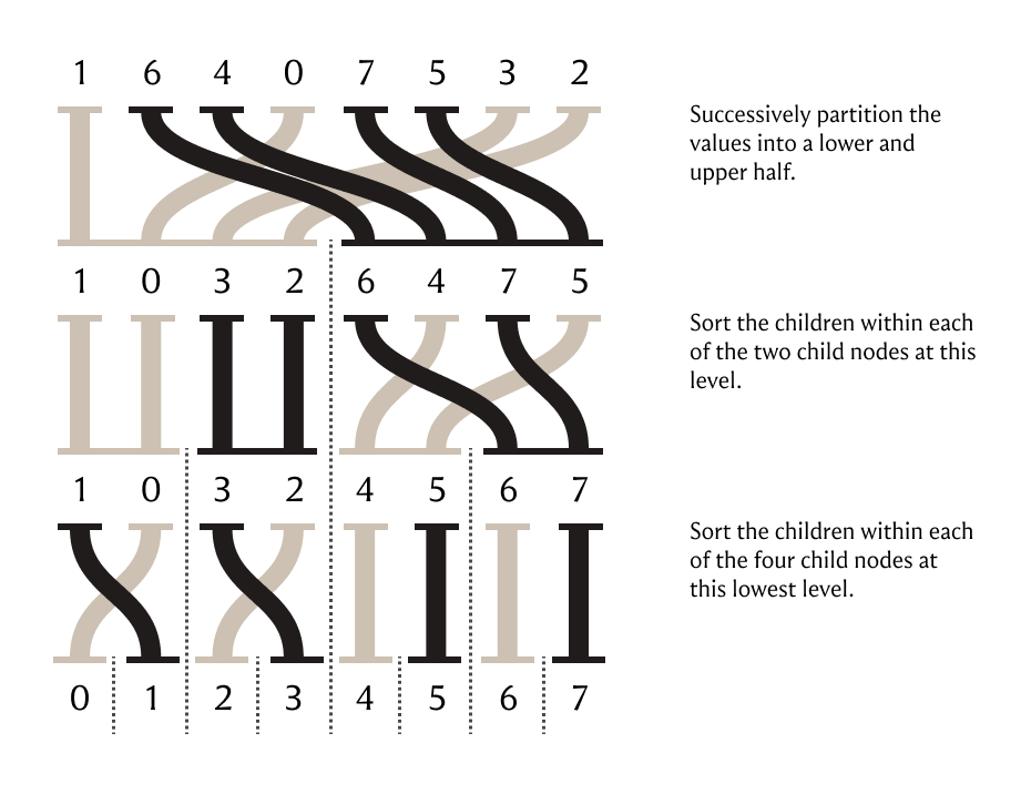 I’ll leave you with a picture I made a while back of an algorithm that constructs a wavelet tree through a series of incremental stable sorts.