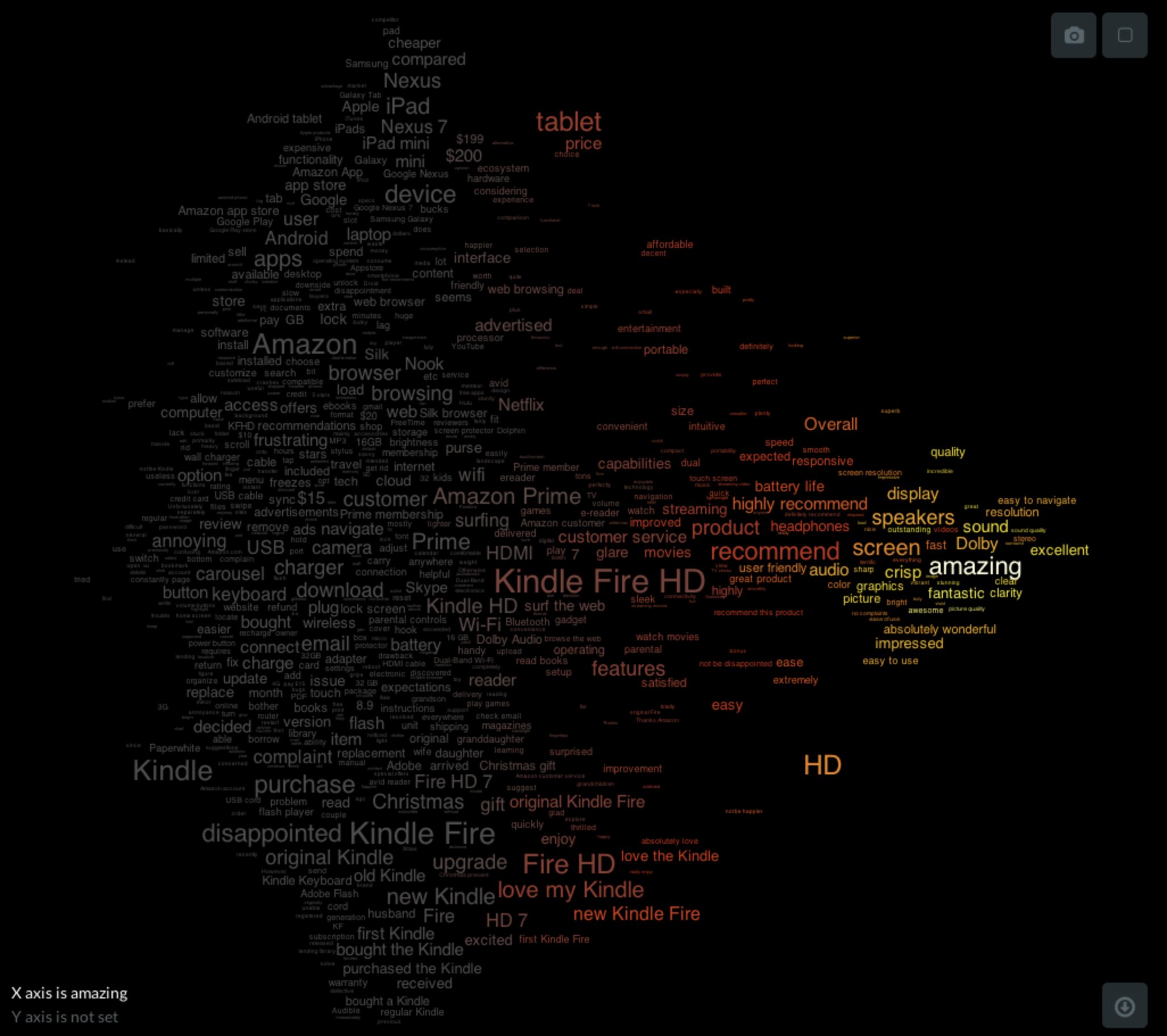 Our main visualization was called a concept cloud and it used semantic vectors to make a more meaningful word cloud visualization, in which not only the size but also position & color of the words was used to convey the structure of conceptual relationships in the underlying text.