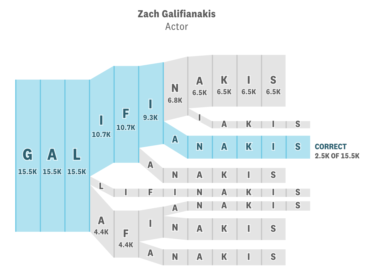 - The Gyllenhaal Experiment, which visualizes people’s attempts to spell a famous person’s name:
